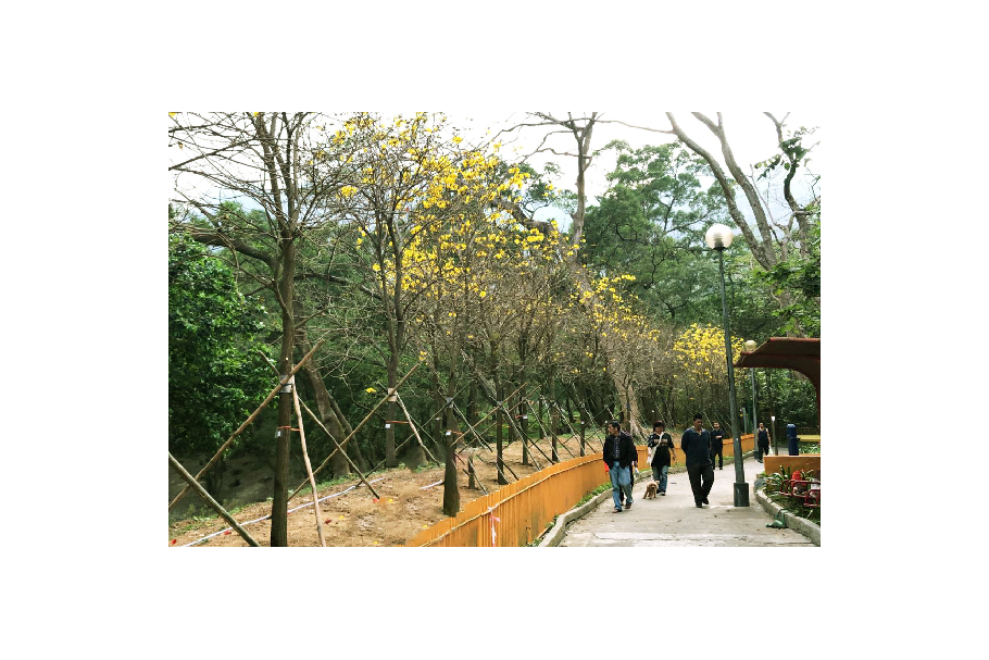 - Planting 45 nos of Golden Trumpet-trees along a 100 meters path to build up the gorgeous garden;