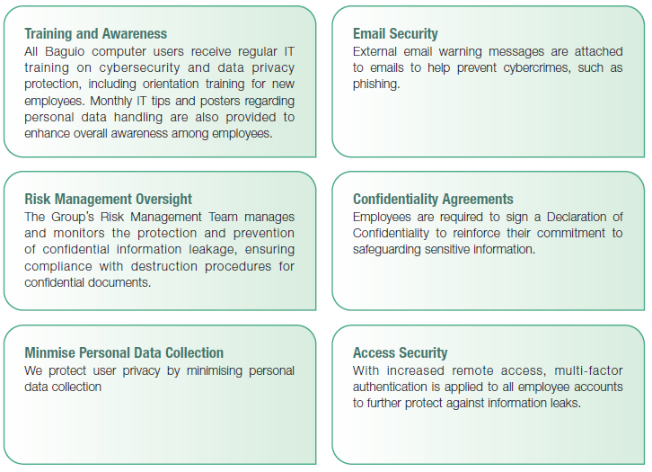 Senior management-led management breakout sessions were conducted to explore the application of smart and green technologies across the Group’s operations. During the sessions, business units shared emerging technologies relevant to their functions, with a focus on improving operational efficiency and customer value. Participants also put forward digitalisation proposals, considering implementation feasibility, required resources and potential challenges, and outlined initial action plans to support the adoption of selected technologies.