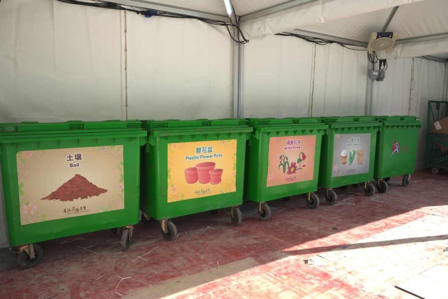 - 由展览布置至清拆期间,提供全面废物管理服务,于场内设立回收站,分类收集花卉、泥土、盆栽、三色回收物及一般废物,並运送至相关设施处理