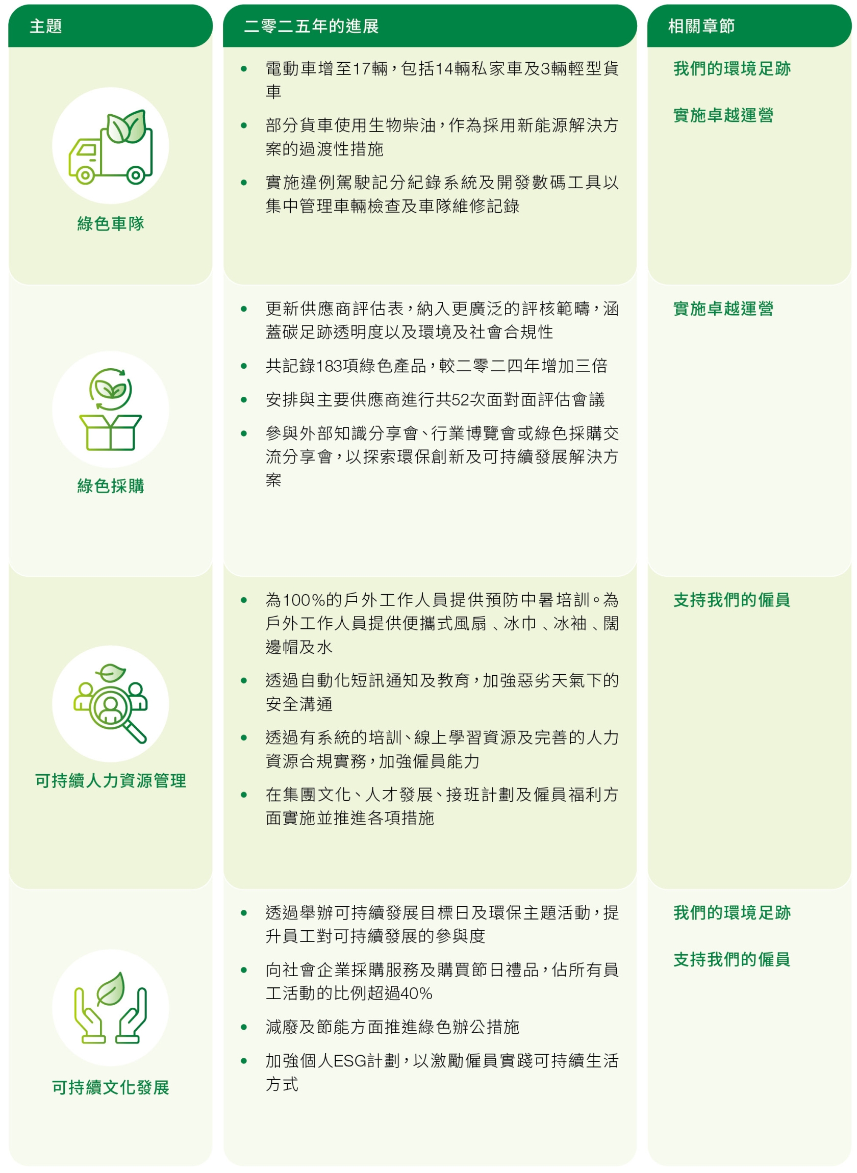二零二五年,本集團透過系統性檢討氣候相關風險與機遇,並輔以場景分析、財務影響評估及內部持份者溝通,進一步加深對氣候相關事宜的理解。詳細資料載於《可持續發展報告2025》第15-20頁。