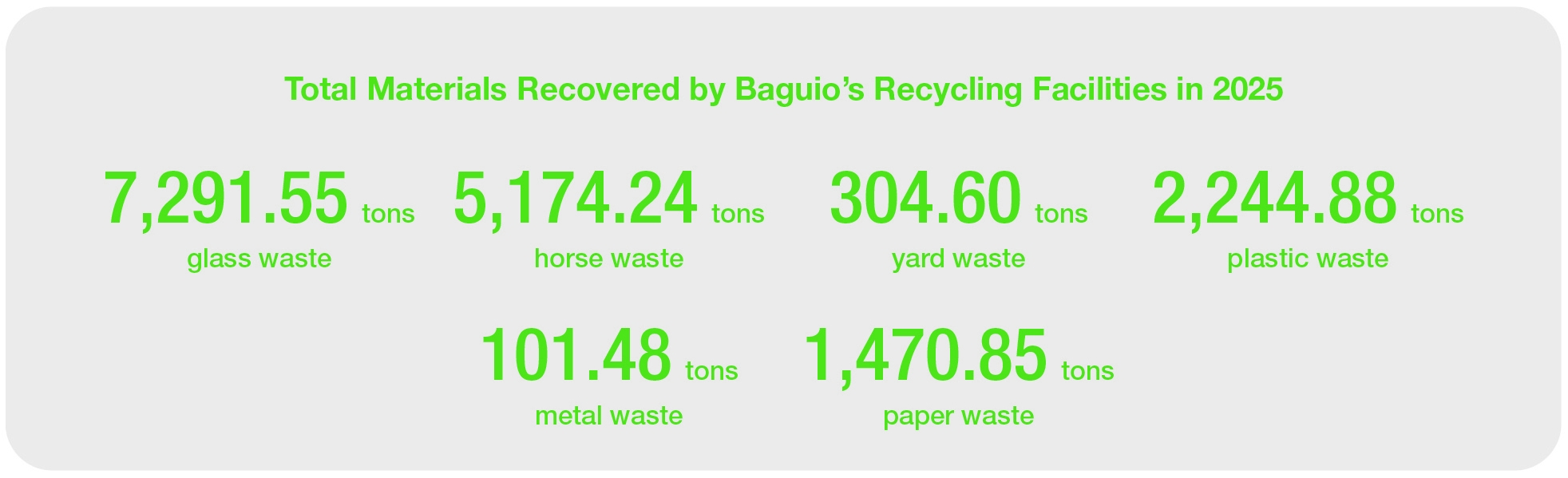 During major events, trained workers and recycling ambassadors were deployed to assist with waste sorting and promote proper recycling practices. Collected plastic bottles were transported to the Group’s sorting and recycling facilities, sorted into different types of bottles using high-speed automated equipment with Near-infrared technology, before being converted into food-grade ready rPET materials with our external recycling partners. We operate the on-site microbial decomposition system to transform food waste, paper cups, and other paper containers generated within the venue into compost materials for plant fertilization. Other recyclables are delivered to other local recycling facilities.